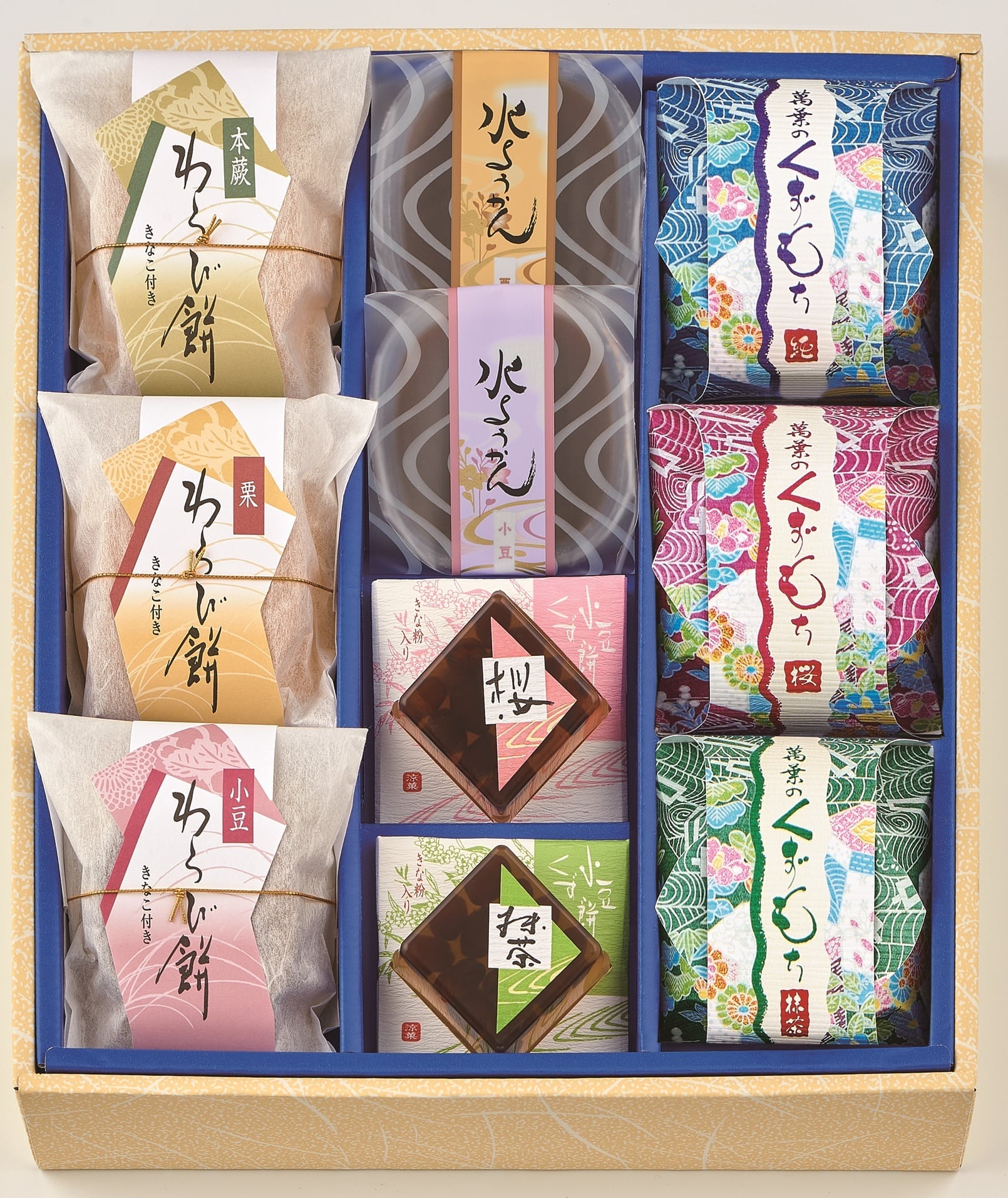 自然の素材を大切にし、風味と彩りへのこだわりが「風さらさ」を創り出しました。吟味された最高の材料を使用した「水ようかん」「くず餅」「わらび餅」を詰め合わせました。
